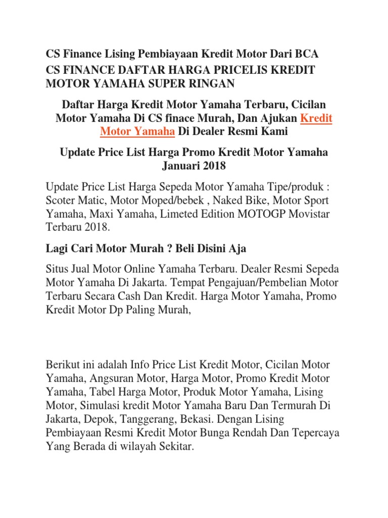 Paket Kredit Motor Yamaha Leasing Bca Finance Bandung Cimahi