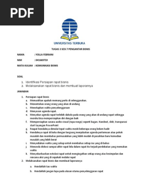 Tugas 3 Komunikasi Bisnis Docx Nama Mega Yuliani Zulkarnain Nim 041214864 Tugas 3 Komunikasi Bisnis 1 Identifikasi Persiapan Rapat Bisnis Dalam Rangka Course Hero