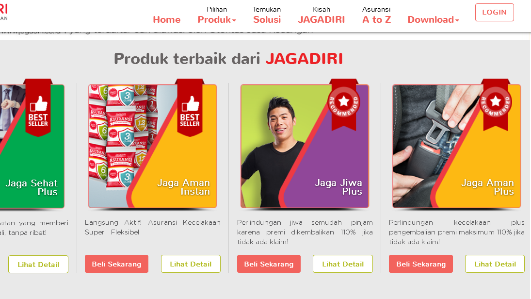 Punya asuransi juga sama lho, bikin pikiran ... Yuk review Polis kamu. ... Kondisi di luar rmh sedang tidak baik-baik aja, tetap waspada, jaga diri. JAGA DIRI Ini adalah asuransi perjalanan JAGADIRI, brand yang didirikan oleh PT Central Asia Financial, salah satu bagian dari keluarga besar Salim Group. Lahirnya JAGADIRI pada tanggal 27 Januari 2015 diawali dengan kemunculan PT Central Asia Financial (CAF), sebuah perusahaan asuransi yang bercita-cita untuk menghadirkan perlindungan unggul ... Simak Tips Jaga Kesehatan Jantung & Kisi-Kisi "Nyapit Cuan 2", Saksikan IG Live MNC Life Hari Ini Pukul 16.00! Sevilla Nouval Evanda, Jurnalis · Jum'at 29 Oktober 2021 10:04 WIB. Share on Facebook ... Hario Asuransi Online Serahkan Santunan ke Ahli Waris Nasabah Meninggal Akibat Covid-19.