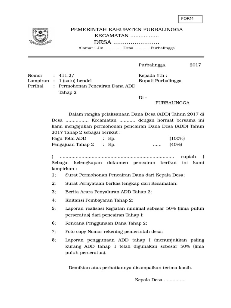 Contoh Surat Permohonan Pencairan Dana Desa - Contoh ...