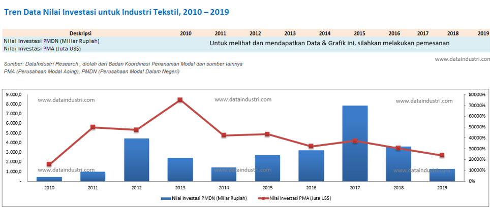 Data Investasi Industri Tekstil 2010 2021 Pusat Data Industri Indonesia