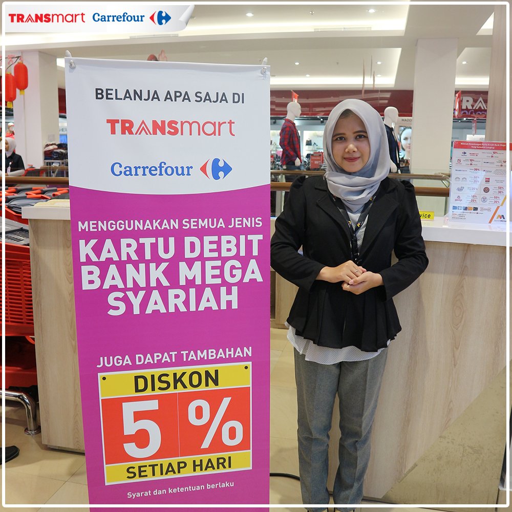 Pemegang Kartu Kredit Mega Platinum: 50% Off pada akhir pekan (Sabtu dan Minggu) dan hari libur nasional untuk pembelian handpack dengan maksimum pembelian Rp 1.500.000,-35% Off untuk semua produk dengan minimum pembelian Rp 75.000,- dengan maksimum pembelian Rp 1.500.000,-Pemegang Kartu Debit MegaFirst:
