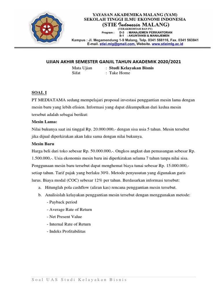 Sebutkan 5 Contoh Analisis Kelayakan Finansial Brainlycoid. Bmp Ekma4311 Studi Kelayakan Bisnis. Contoh Soal Ujian Manajemen Sumber Daya Manusia Msdm. Studi Kelayakan Bisnis. Kumpulan Soal Uas Skb. Aspek Pasar Dalam Studi Kelayakan Bisnis Sarnoid. Begitulah informasi yang bisa kami uraikan mengenai contoh soal dan jawaban studi kelayakan bisnis.
