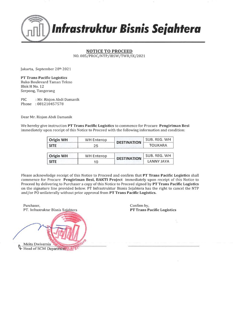 BBB+" rating to PT Infrastruktur Bisnis Sejahtera PEFINDO has assigned its " idBBB+" ratings to PT Infrastruktur Bisnis Sejahtera (IFBS) and IFBS' proposed Medium Term Notes (MTN) Year 2020 of a maximum of IDR300.0 billion. The proceeds will be used to refinance its financial obligation (70%) as well as to finance Investasimu.com. PT Mitra Angkasa Sejahtera Tbk (IDX: BAUT) didirikan sesuai dengan Akta Pendirian Perseroan No. 63 tanggal 19 November 2012 yang dibuat di hadapan Doktorandus Wijanto Suwongso, S.H, Notaris di Jakarta. Berdasarkan ketentuan Pasal 3 Anggaran Dasar Perseroan, maksud dan tujuan serta kegiatan usaha Perseroan adalah menjalankan usaha dalam bidang perdagangan besar dan eceran ... Pt infrastruktur bisnis sejahtera address: Pt infrastruktur bisnis sejahtera, jl. Your trust is our main concern so these ratings for pt infrastruktur bisnis sejahtera are shared 'as is' from employees in line with our. Test your internet and compare your results. Average ping response times for the pt infrastruktur bisnis sejahtera network are ...