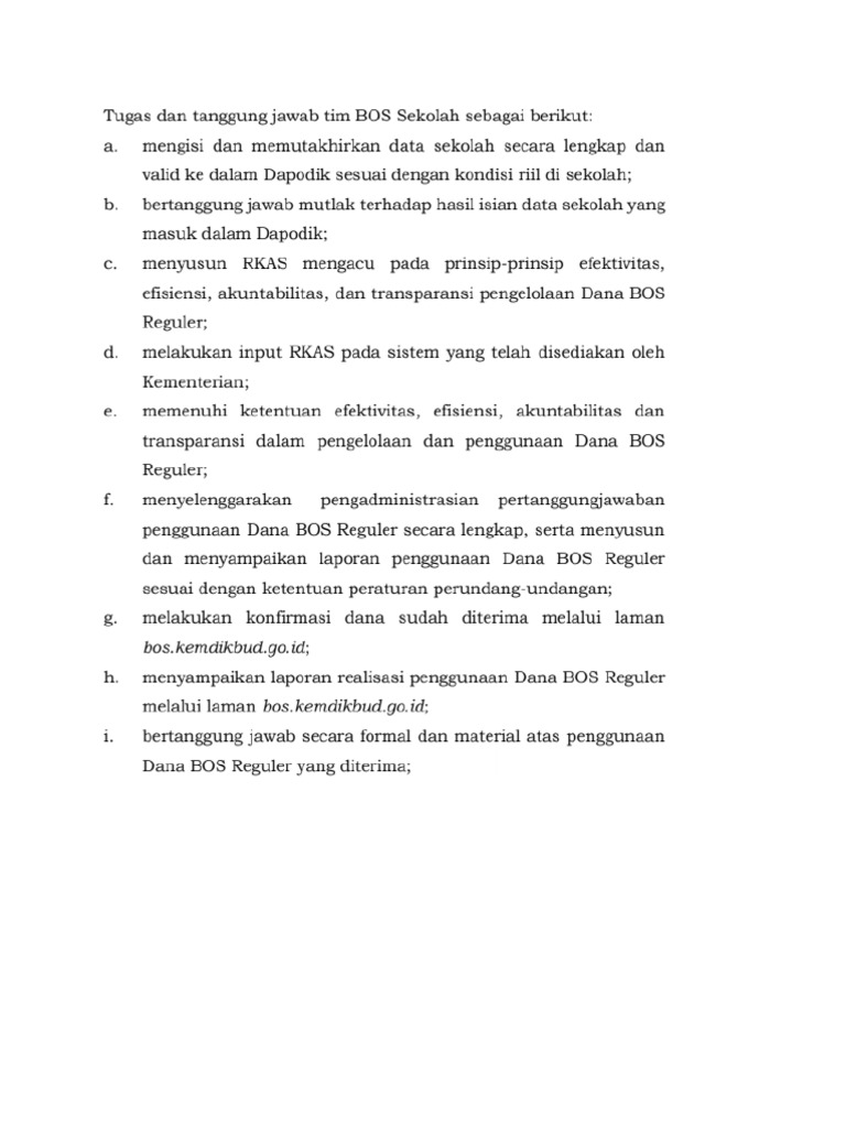 Tata Cara Pengelolaan dan Pelaporan Dana BOS Reguler oleh ... menyelenggarakan pengadministrasian pertanggungjawaban penggunaan Dana BOS Reguler secara lengkap, serta menyusun dan menyampaikan laporan penggunaan Dana BOS Reguler sesuai dengan ketentuan peraturan perundang-undangan; melakukan konfirmasi dana sudah diterima melalui laman bos.kemdikbud.go.id;