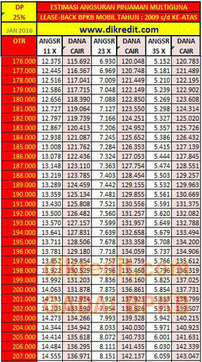Tabel Angsuran Gadai BPKB Motor/Mobil | Gadai BPKB Online Tabel Angsuran Pinjaman Uang Dengan BPKB Mobil. Lihat tabel simulasi angsuran atau cicilan untuk Pinjaman Uang Dana Tunai Cepat Dengan Gadai BPKB Mobil Honda, Suzuki, Toyota, Sedan, Kia, Mercedes, BMW, Jeep, Jakarta, Tangerang, Depok, Bogor, Bekasi, Semarang, Surabaya, Medan...