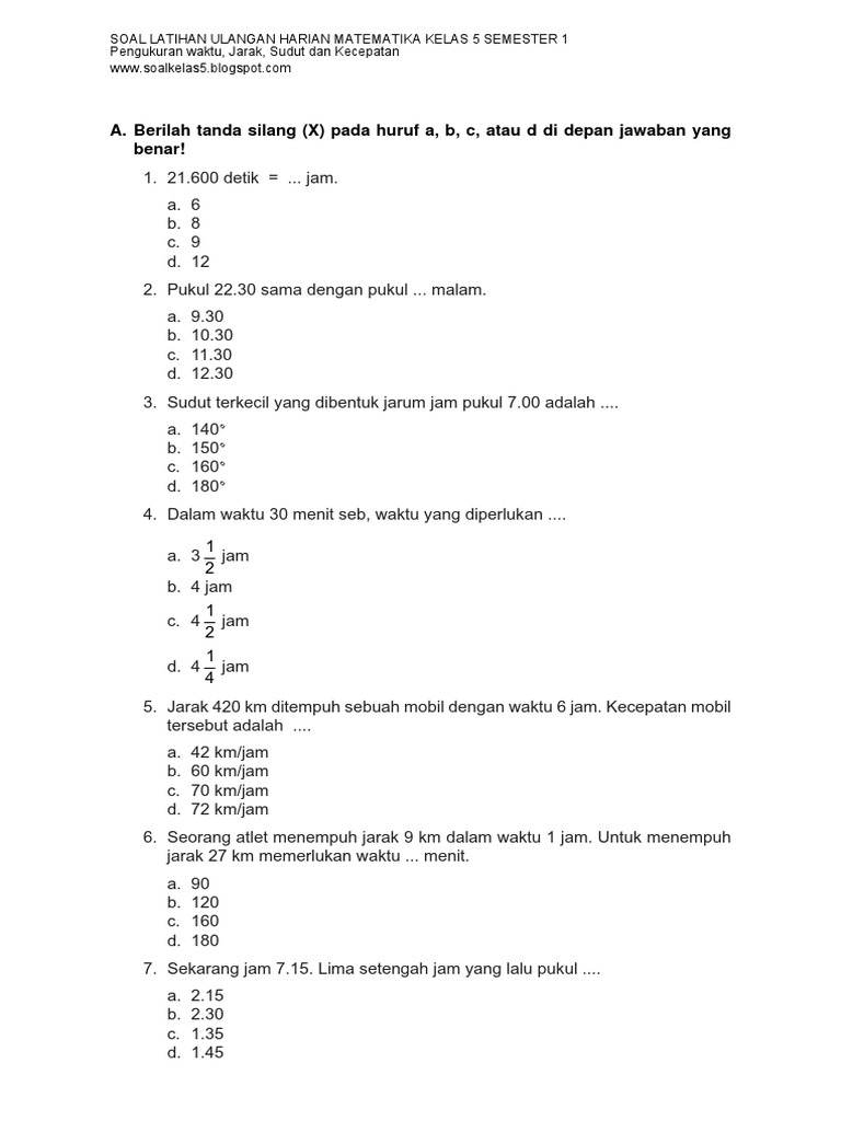 Sep 09, 2021 · Soal Matematika Kelas 5 SD. 1. Soal Matematika Kelas 5 SD Bab 1 Bilangan Bulat Dan Kunci Jawaban. 1. Contoh penggunaan sifat asosiatif pada operasi hitung ( 72 + 54 ) + 93 = …. 2. Hasil dari 354 + 125 + ( – 478 ) adalah …. 3. Hasil dari – 239 + ( – 123 ) + 214 adalah …. Sep 29, 2021 · Bank Soal PH, PTS dan PAS Matematika Kelas 5 Semester 1 - Pada kesempatan ini Sanggar Belajar HERO akan mengulas sekaligus membagikan bank soal khususnya untuk SD. Bank SD Kelas 5 merupakan media yang dibutuhkan oleh guru maupun peserta didik, untuk melakukan evaluasi terhadap materi yang sudah dipelajari baik pada saat pembelajaran daring maupun pembelajaran tatap muka terbatas. Apr 29, 2021 · Soal Matematika Kelas 5. Contoh Soal Matematika Kelas 5 SD/MI dan Kunci Jawabannya – Pada kesempatan yang baik ini MajalahPendidikan.com akan memberikan beberapa contoh soal UAS mata pelajaran Matematika kelas 5 SD / MI semester ganjil dan juga genap, yang terdiri dari soal PG dan juga essay dilengkapi dengan kunci jawaban dan pembahasannya.