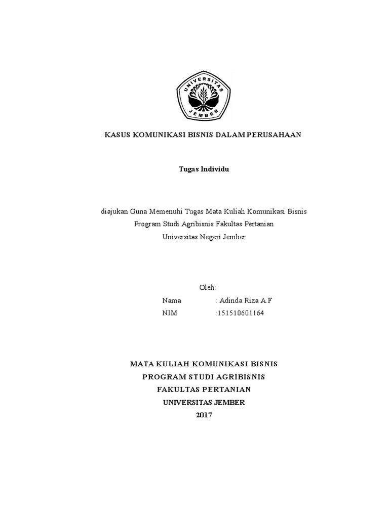 Aul's Blog: Contoh Kasus Komunikasi Bisnis dalam Perusahaan Mar 11, 2015 · Didalam hubungan komunikasi di suatu lingkungan kerja atau perusahaan konflik antar individu akan sering terjadi. Konflik yang sering terjadi biasanya adalah karena masalah komunikasi yang kurang baik. Sehingga cara mengatasi konflik dalam perusahaan harus benar-benar dipahami manejemen inti dari perusahaan, untuk meminimalisir dampak yang timbul. Komunikasi Bisnis yang Efektif - Ruang Lingkup dan Tujuan ... Komunikasi Bisnis merupakan komunikasi yang digunakan untuk membangun hubungan antar perusahaan dalam dunia bisnis. Hal ini dilakukan guna saling mempromosikan atau mempresentasikan suatu nilai produk atau jasa yang dimiliki oleh perusahaan kepada pihak buyer maupun perusahaan lain yang hendak melakukan kerjsama dengan perusahaan yang terkait. CONTOH KASUS TENTANG ETIKA KOMUNIKASI BISNIS - Media Belajar Dalam bisnis yang kompetitif, prinsip ini menuntut agar persaingan bisnis haruslah melahirkan suatu win-win solution. Prinsip Integritas Moral; Prinsip ini dihayati sebagai tuntutan internal dalam diri pelaku bisnis atau perusahaan agar dia menjalankan bisnis dengan tetap menjaga nama baiknya atau nama baik perusahaan . 2.4.2 Keadilan dalam Bisnis