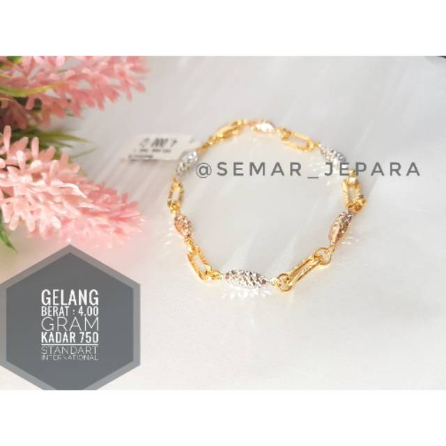 5 Model Gelang Emas Putih & Harga Terbarunya - Ajaib Dengan berat emas 5,4 gram dan kadar 18 karat, struktur gelang ini kokoh menunjang penampilan untuk segudang aktivitas kamu. Hanya dengan Rp4.595.100, gelang emas ini memiliki berbagai daya tarik. Sweet Heart Cuff. Manis, anggun, putih, cantik yang menggoda adalah kata yang bisa mewakili gelang emas putih wanita ini.