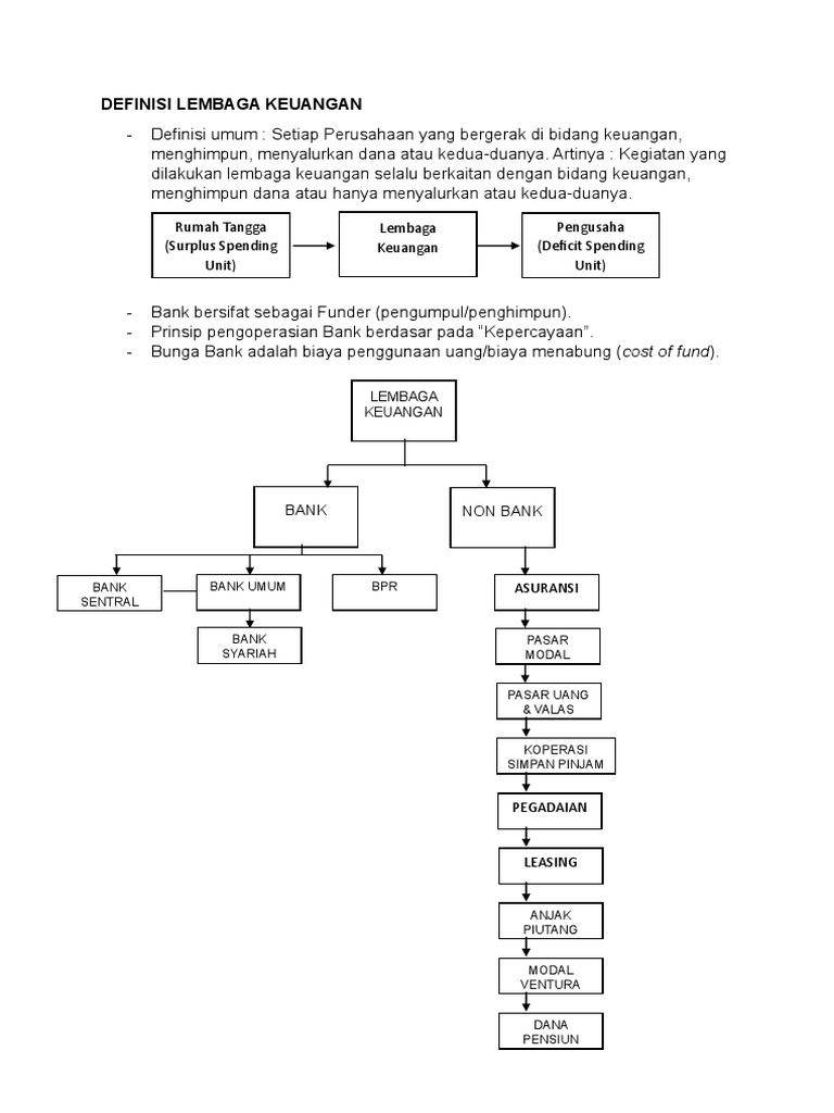 PDF Lembaga Keuangan - Perpustakaan UT lembaga keuangan. Pokok materi dalam modul ini sebagai berikut: A. pengertian dan sejarah singkat perbankan di Indonesia; B. lembaga keuangan bukan bank dan lembaga keuangan lainnya. Agar Anda berhasil dengan baik dalam mempelajari modul ini, ikutilah petunjuk belajar berikut ini. Bank dan Lembaga Keuangan - Penerbitan - PKN STAN Buku ini terlahir dari sebuah keinginan para dosen atau pengajar mata kuliah Bank dan Lembaga Keuangan Lainnya, agar menjadi panduan bersama dalam mengajarkan mata kuliah Bank dan Lembaga Keuangan Lainnya kepada mahasiswa. Buku ini mengajikan bahasan mengenai konsep uang, kebijakan moneter, dan proses bisnis industri perbankan dan lembanga ...