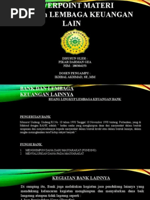 PDF Unduh Bank Dan Lembaga Keuangan Lainnya Kasmir PDF secara ... Bank Dan Lembaga Keuangan Lainnya Kasmir Pdf - FC2 Bank Dan Lembaga Keuangan Lainnya Kasmir Pdf Posted on 7/31/2018 admin Lembaga keuangan non bank adalah Semua badan yang melakukan kegiatan di bidang keuangan, yang secara langsung atau tidak langsung menghimpun dana terutama