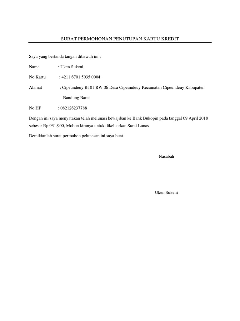 34 Contoh Surat Penutupan Kartu Kredit - Info Uang Online Surat pernyataan penutupan kartu kredit. Berikut informasi sepenuhnya tentang contoh surat permohonan penutupan kartu kredit. Keringanan Uang Kuliah Tunggal Ukt Atas Dampak Bencana Admin blog dapatkan contoh 2019 juga mengumpulkan gambar gambar lainnya terkait contoh surat permohonan penutupan kartu kredit bni dibawah ini.