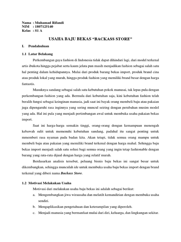 Contoh Proposal Usaha Pakaian Online Pdf Gambar 11 contoh kaos pria Gambar 12 contoh kaos wanita 21 GAMBARAN USAHA Di dalam pertumbuhannya bisnis online bidang fashion besar kemungkinan arah. Perkembangan usaha pakaian distro yang saat ini semakin pesat membuat sebagian orang tertarik untuk membuat contoh proposal bisnis pakaian yang nantinya dapat diajukan dalam mencari modal tambahan. Download Contoh Proposal Kewirausahaan Baju Online PDF ... proposal, bisnis, usaha, baju, online, OLSHOP, proposal, Tujuan, dari, Program, Kreativitas, Kemahasiswaan, dalam, bidang, kewirausahaan, ini, adalah, Wirausaha, Baru ... (DOC) contoh proposal usaha | Kagayaita aditya - Academia.edu proposal/ usulan program mahasiswa teknik informatika judul rencana usaha : penjualan pakaian dan aksesoris khusus pria secara direct marketing dan internet marketing nama & alamat pts : universitas stmik handayani jl.