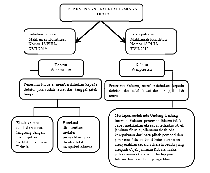 Eksekusi Jaminan Fidusia Dalam Penyelesaian Kredit Macet ... sehungan dengan pelaksanaan eksekusi obyek jaminan fidusia ditemui beberapa hambatan benda jaminannya tidak didaftarkan atau dibuat dibawah tangan, apabila terjadi wanprestasi oleh penerima fasilitas, maka pemberi fasilitasnya merupakan kreditor biasa yang tidak memiliki hak preferent, terhadap kreditor tersebut eksekusi jaminan fidusia untuk …